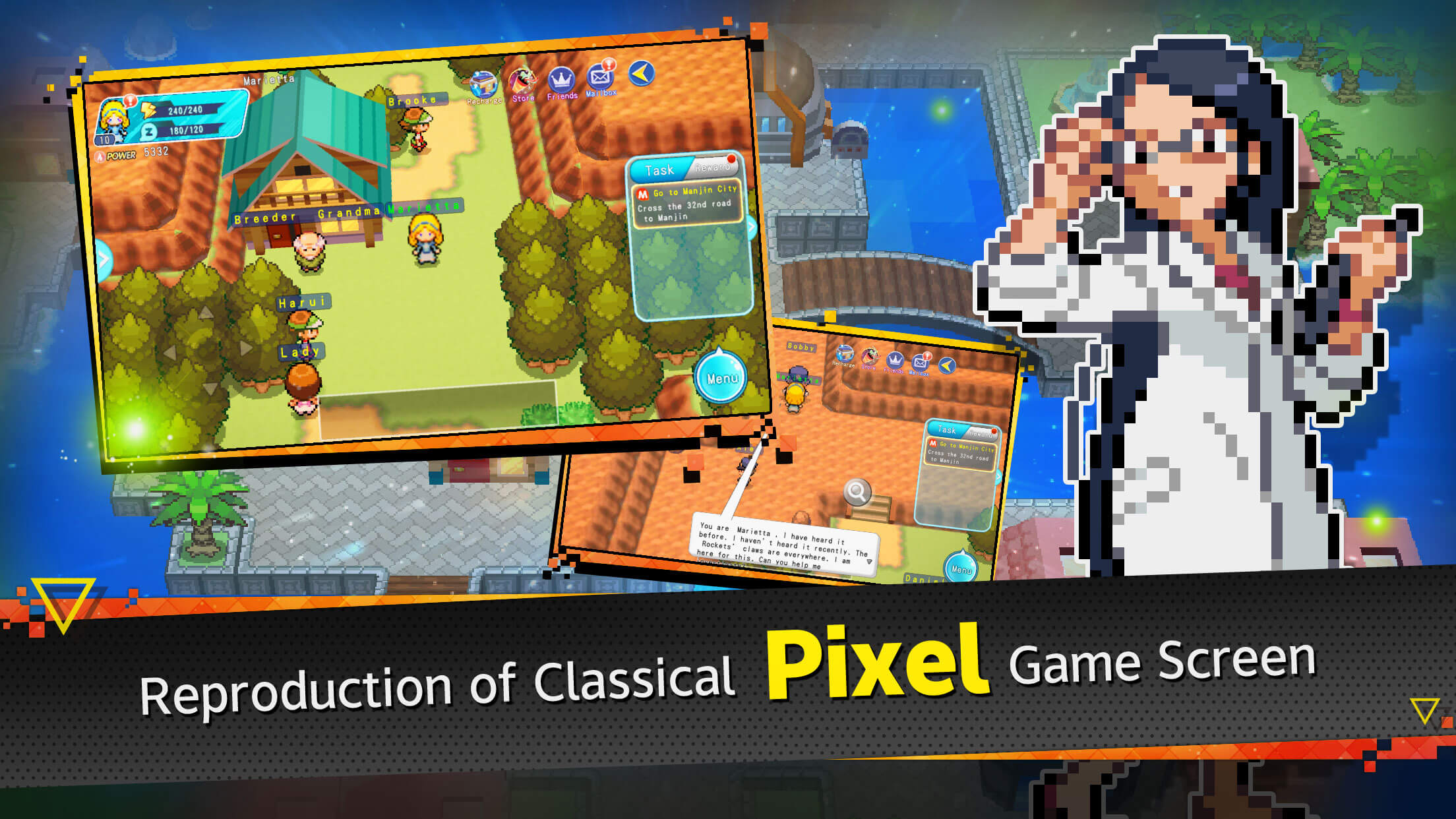 Classic pixel style RPG, experience intense battle, global player global server. Collect and evolution, PvP battle, multi development and much more fun, all is for becoming the No.1 of all players.
